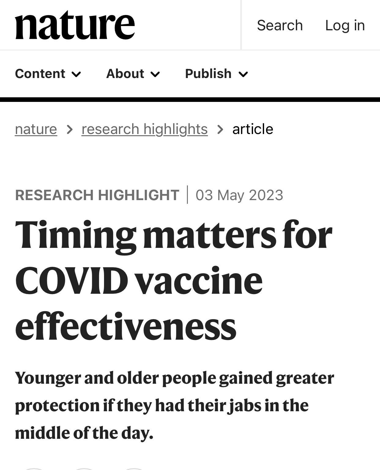 A new study published in Nature confirms what many have suspected all along. The Covid jabs are 95% effective, but only if you get them at lunchtime.
