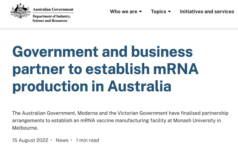 In the future, Australians can expect mRNA vaccines to be available for all manner of ills. From Moderna’s announcement of the Australia-Victoria partnership,