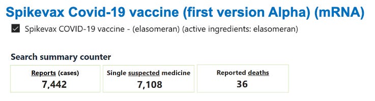 This is the product that currently has 7, 442 reported adverse events in DAEN (Australia’s VAERS or Yellow Card database). 36 of these entries are reported deaths.