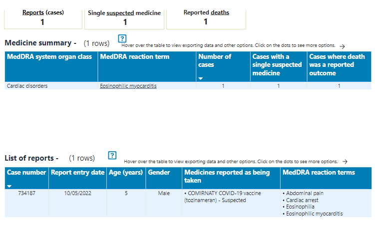 Below is the report of a five year old boy who died due to myocarditis after Pfizer vaccination (DAEN, entry date 10 May 2022). Myocarditis is an ‘expected’ severe adverse event included in the product information. But there is no public comment from the TGA, and the safety report continues to state that no deaths in children are causally linked to Covid vaccination.