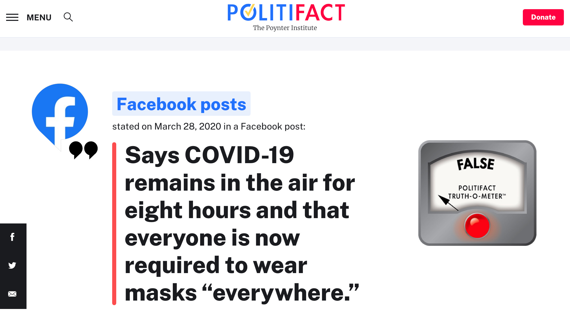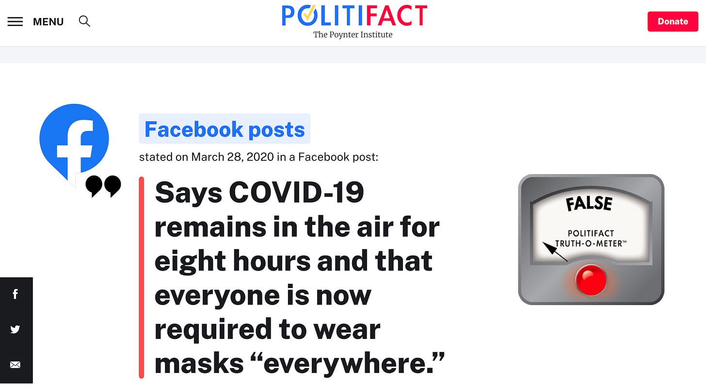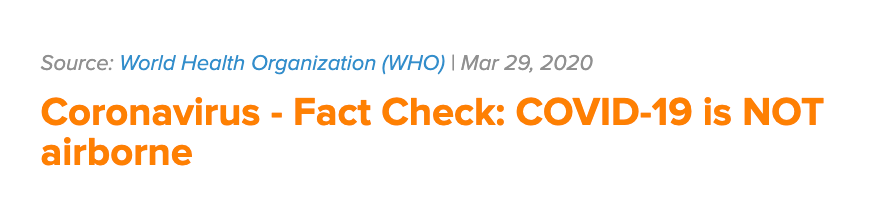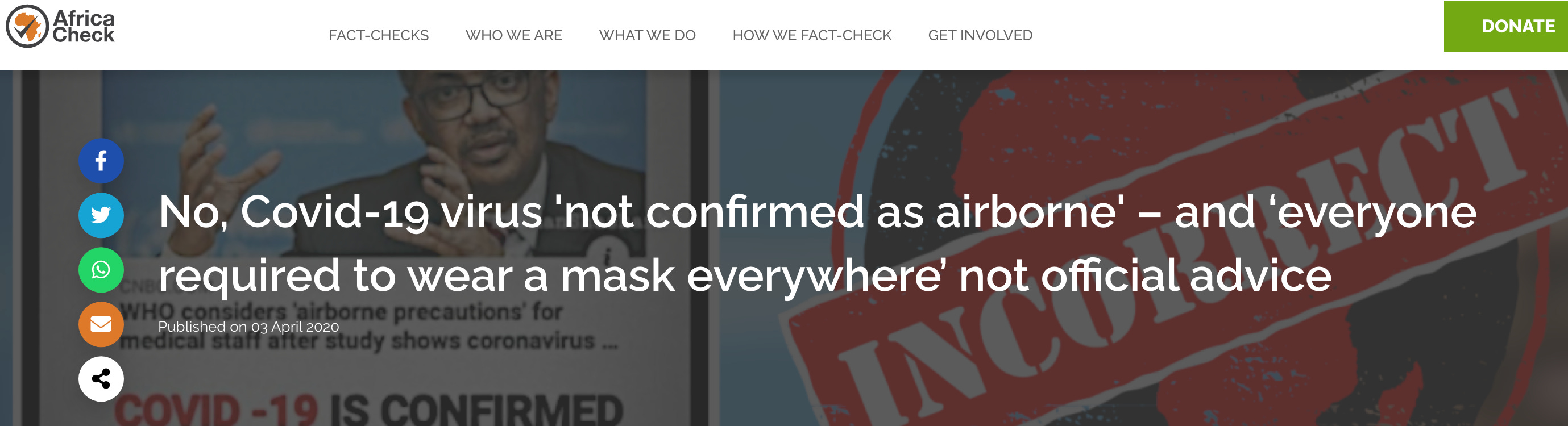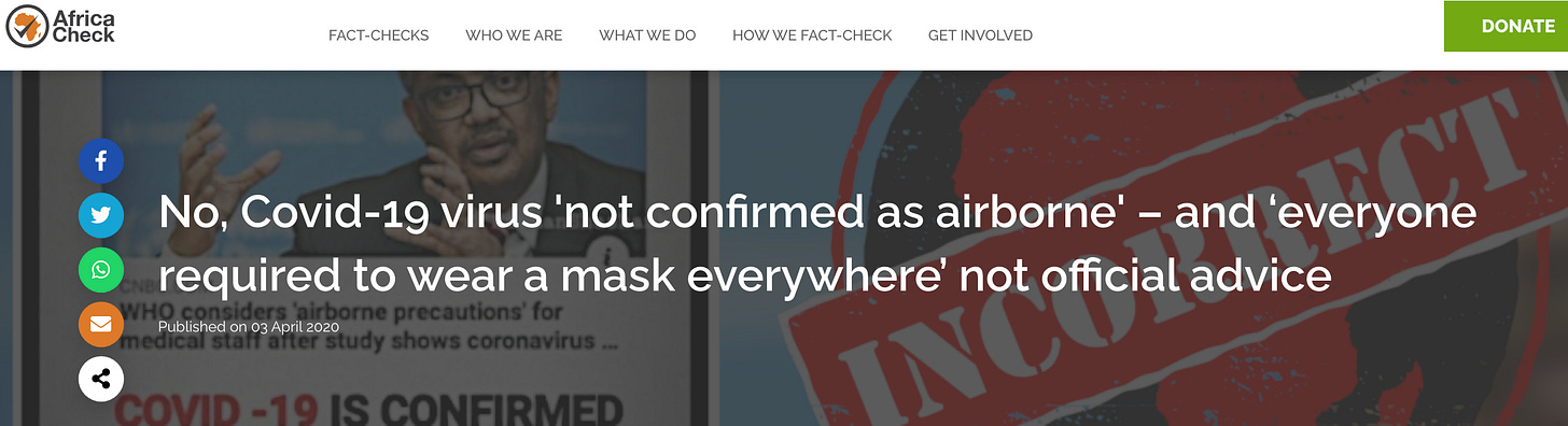 This was backed up by fact-checkers, who ‘debunked’ social media posts claiming that Covid was airborne largely on the basis that authorities, including the WHO and the Centers for Disease Control (CDC) advised that Covid was primarily spread by droplets.