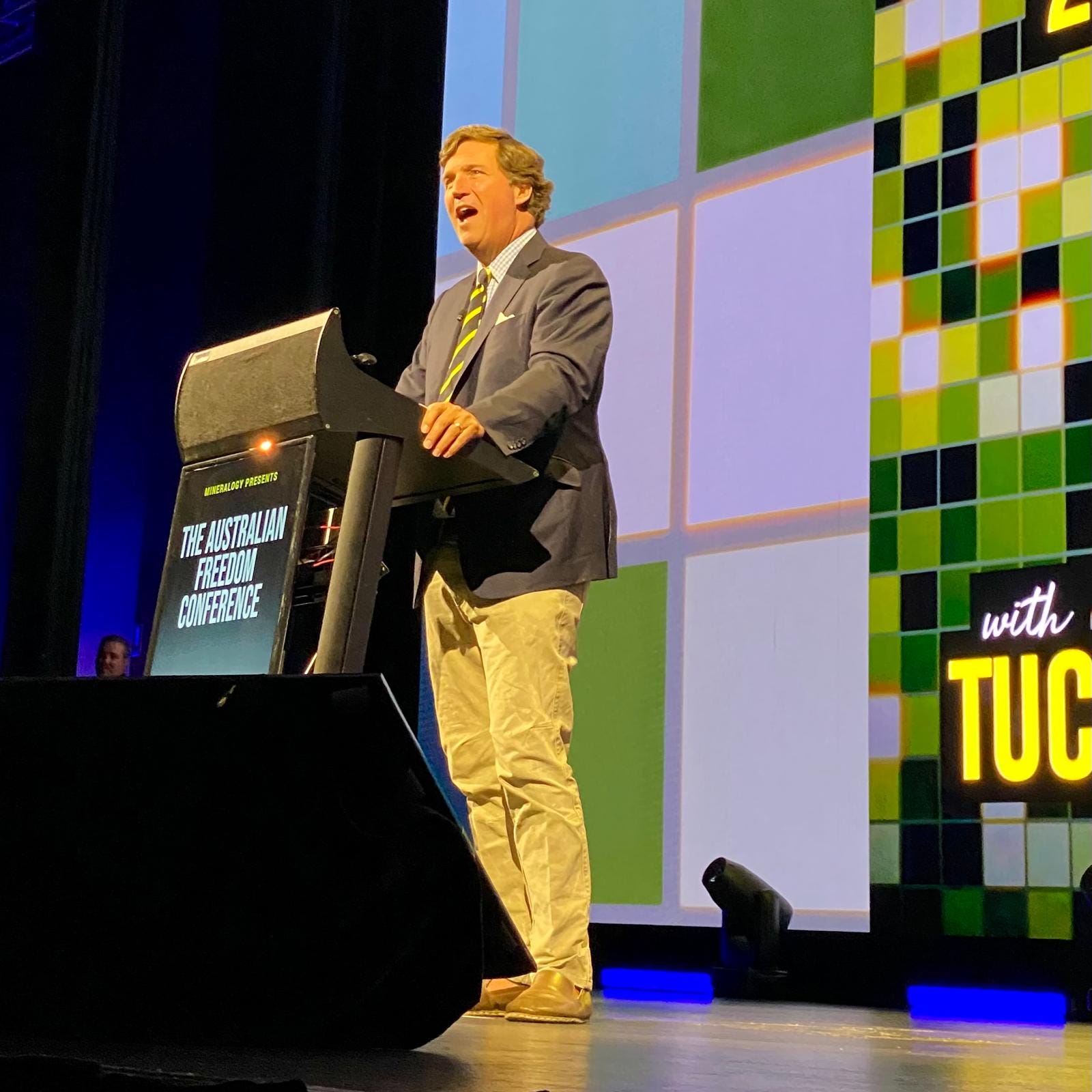 Last Monday night I joined two and half thousand others in Perth to hear Tucker Carlson speak. He was on-brand. The funny laugh, the deep frown, some conservative truisms peppered with libertarian hot-takes.