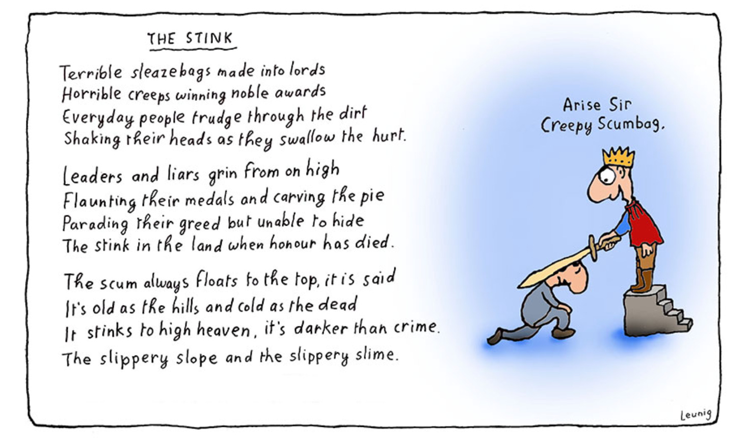 The Australian cartoonist Michael Leunig captured the general feeling of disgust towards our leaders in his latest work, released the same week that the worst Covid premiers were awarded Australia’s top honour: