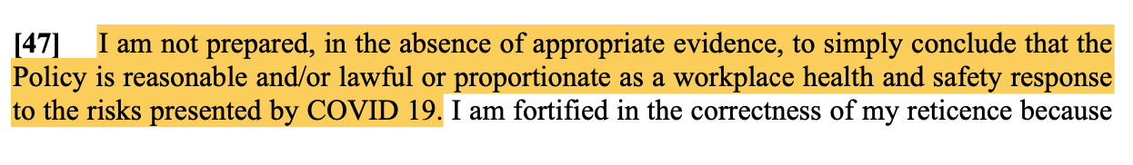 The significance of the Fair Work Commission making such a decision based on what is “reasonable” cannot be understated in the context of disciplinary measures still being undertaken all over the country for failure to comply with the (unreasonable) direction to submit to Covid vaccination (see: QLD teachers and WA police).