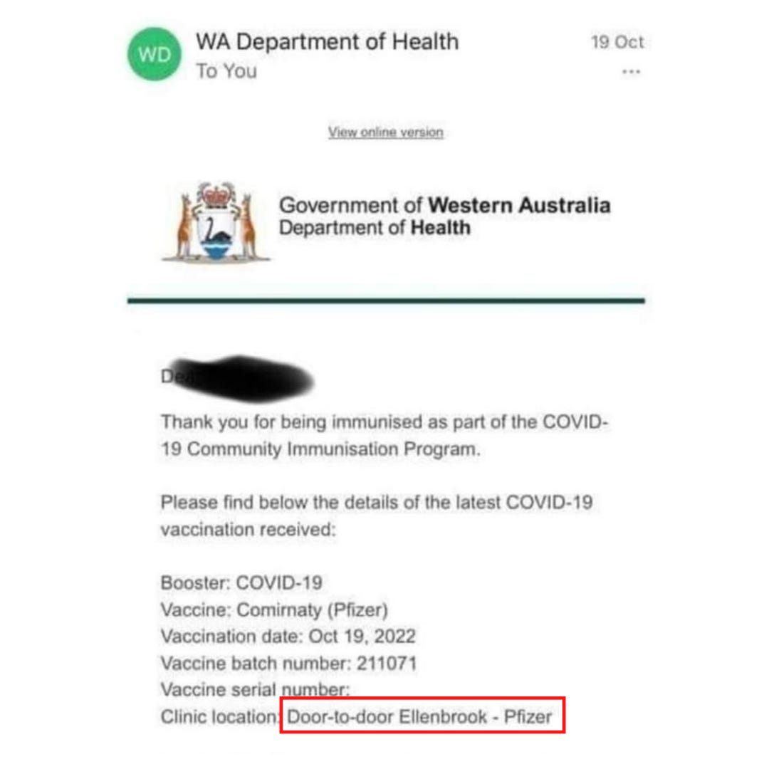WA Health has dispatched nurses to go door-to-door in the suburbs of Perth to vaccinate anyone who is eligible and willing.