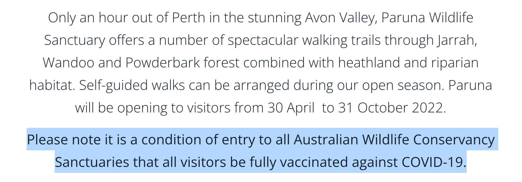 Not the only ones. DPAW not only made their volunteers get jabbed, including campground hosts who live in the national parks for a month at a time, they wouldn’t let anyone set foot on their premises in Kensington unless they had been vaccinated. I hope they lost a slew of their unpaid workforce because of this policy. Noticed no campground host up at Hills Forest in Mundaring this weekend despite it being school holidays. Now they have the nerve to try and entice me back to their volunteers morning tea and put in a bio to say how much I loved volunteering with them. Get f....is my non response.