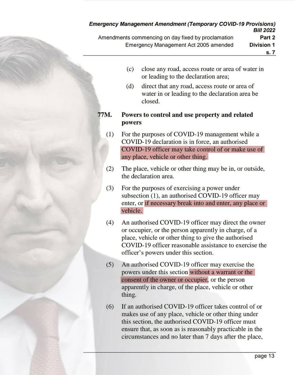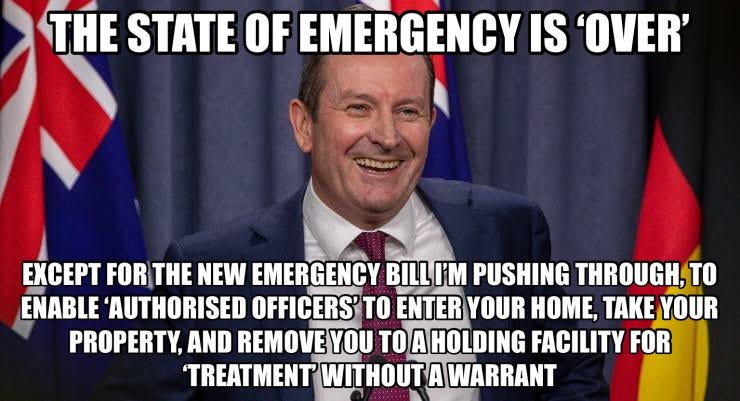 This section sparked howls of terror and outrage, but in fact the legal allowance for forced vaccination was already passed in the Public Health Act 2016 under Section 158. The creep against fundamental civil rights such as bodily autonomy has been in motion for longer than West Australians may realise.