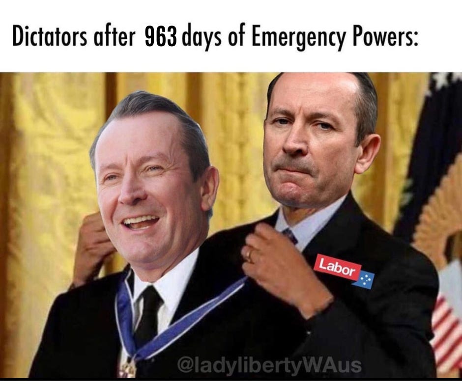 To those outside WA, there’s a running joke in WA about the mysterious ‘health advice’ that McGowan repeatedly refers to as justification for all sorts of outrageous claims and backflips. To date, his government has successfully kept the ‘health advice’ a secret, refusing to release it to journalists or the public. You can read more about how McGowan’s government has turned their election promise of gold standard transparency into a punchline, HERE.