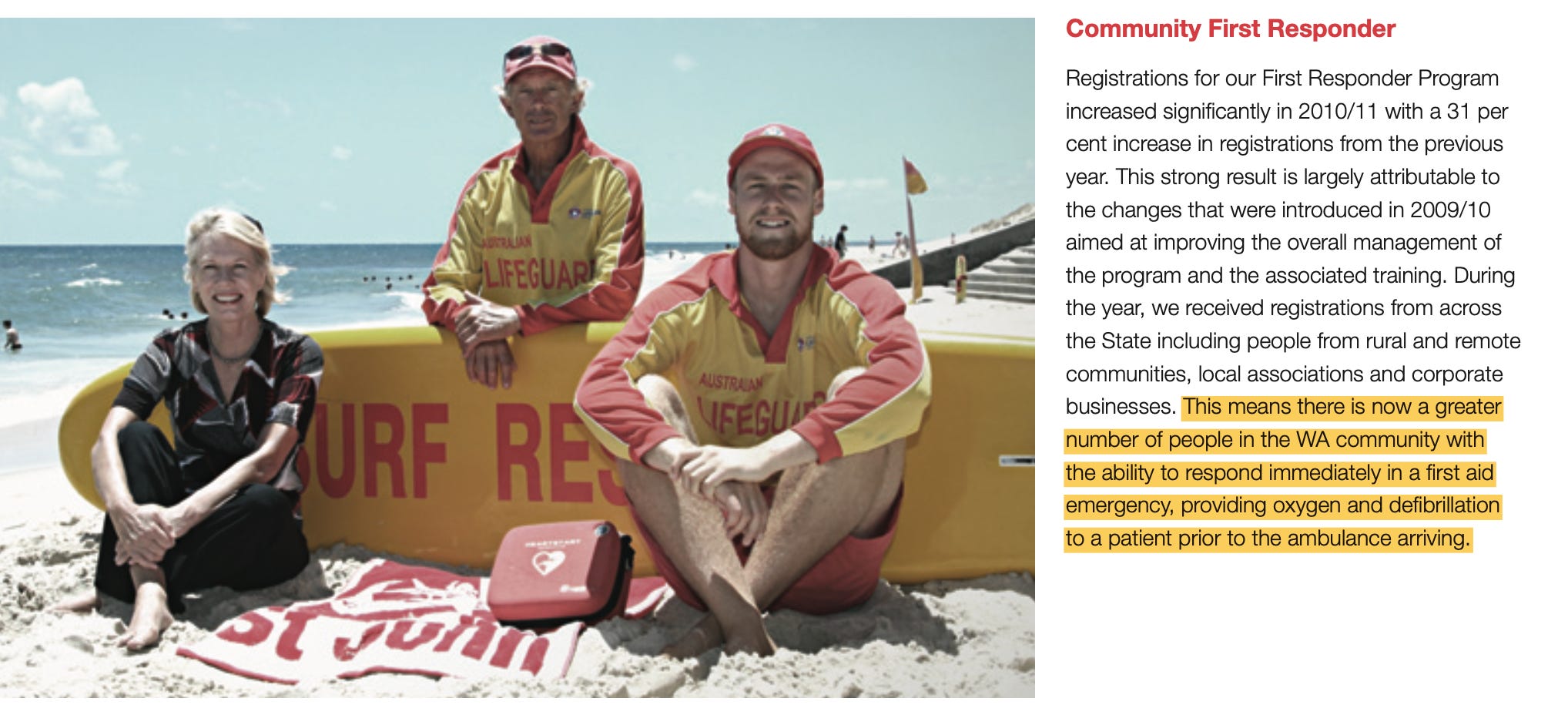 St John’s soon identified that OHCA events were a leading cause of death in Western Australia.1 It was clear to St John’s that too many lives were being lost during the wait time for the ambulance. OHCAs required immediate emergency care on site.