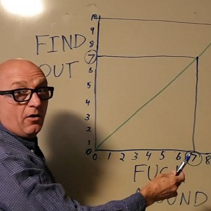 As we can see on the F*** Around Find Out Chart below, a certain amount of f***ing around is required in order to find things out. (Watch the one min video explainer here)