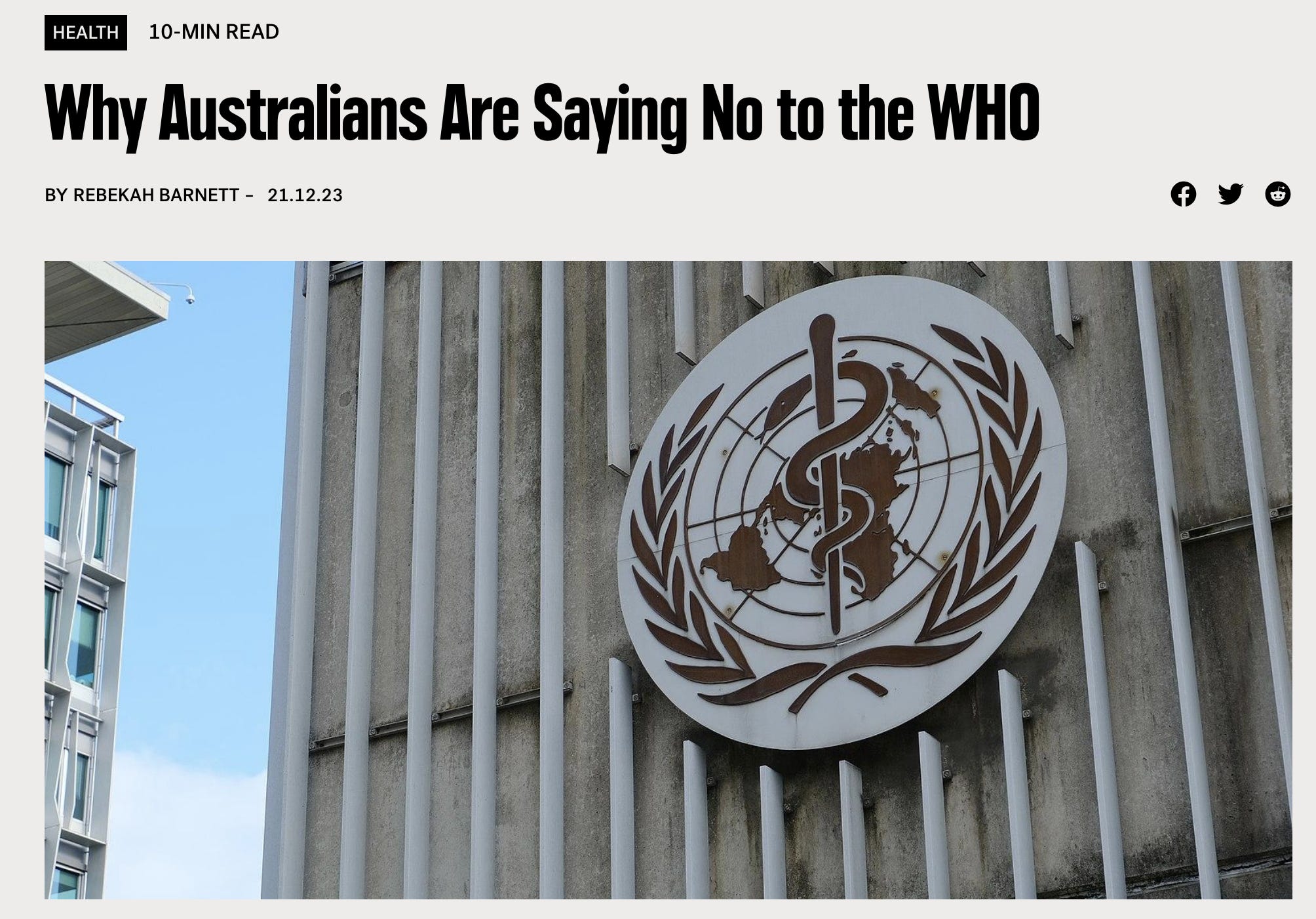 Who runs the world? The WHO will, if Australia and other Member States agree to several proposed reforms. This is the view of a growing chorus who warn that Australia risks losing its sovereignty over public health decision-making to the WHO, without necessarily even realising it…